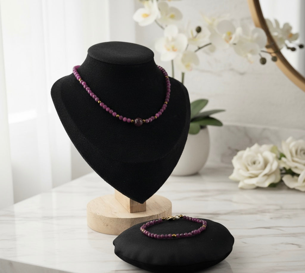 HOA Рубин и Златен Хематит: Кралска Енергия - комплект гривна и колие