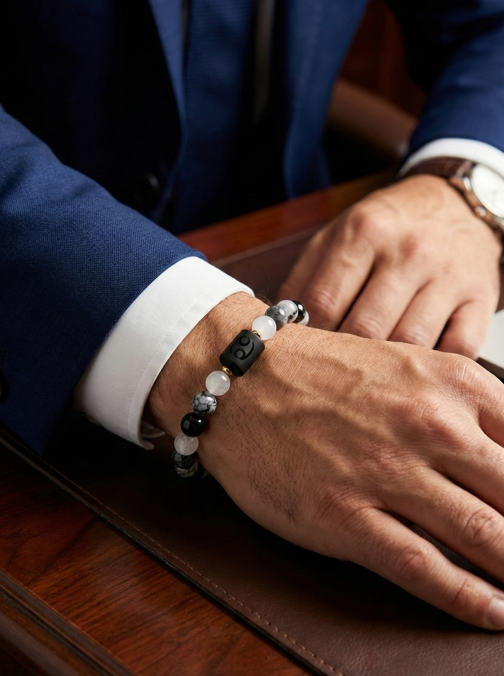 “Cancer Nightwarden” е мъжка гривна за зодия Рак, създадена за мъже с дълбока вътрешна сила, инстинкт за защита и тиха устойчивост.