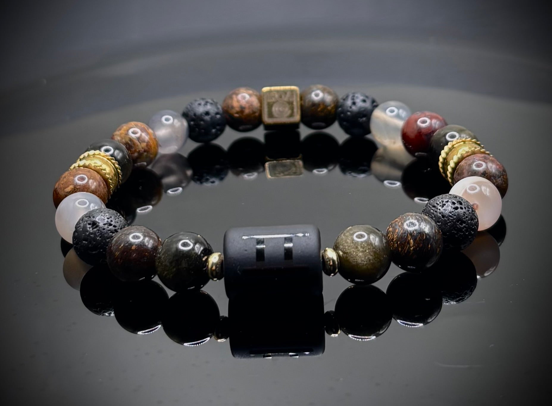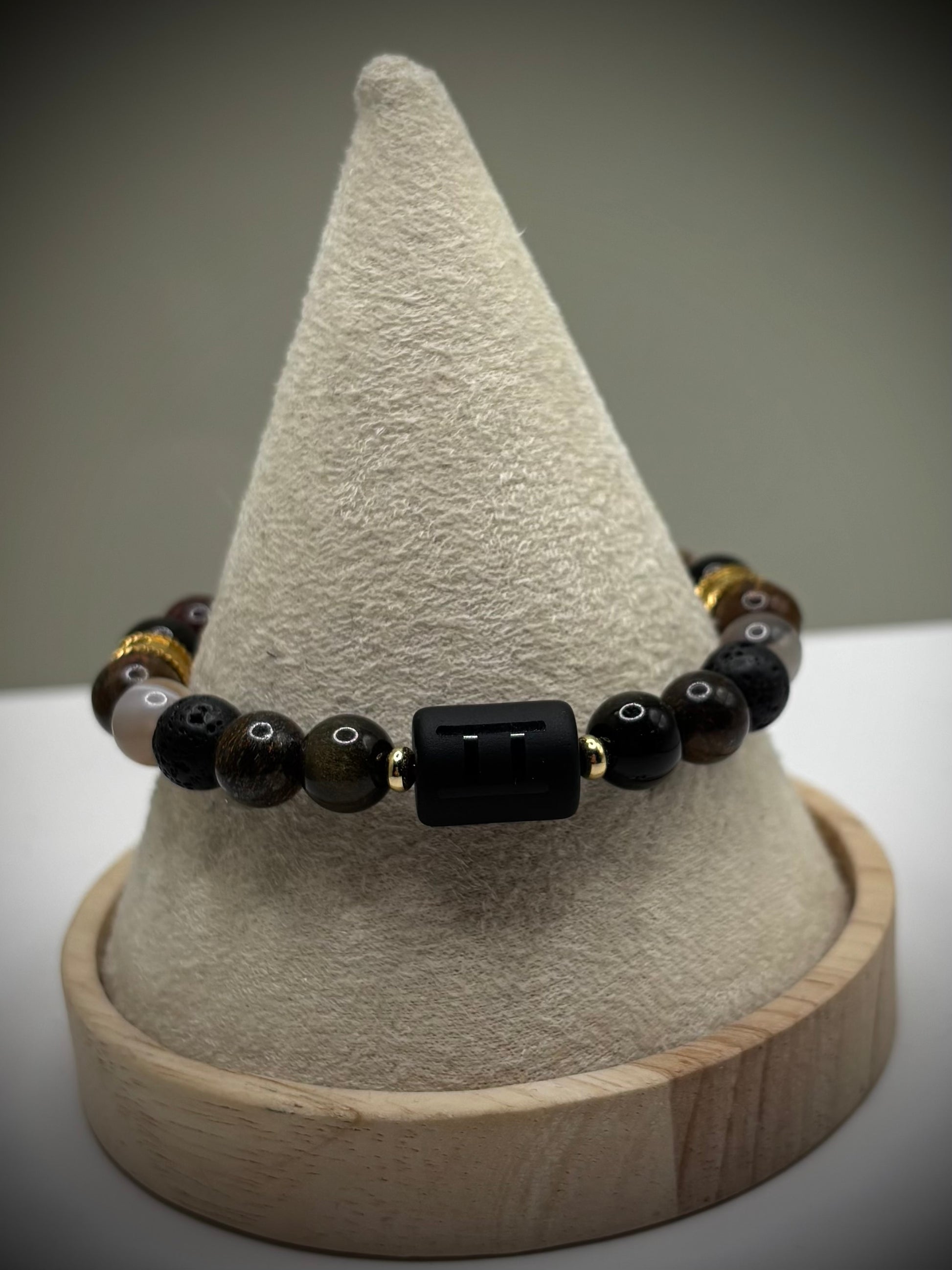 “Gemini Paradox” е мъжка гривна за зодия Близнаци, създадена за умове в постоянно движение, хора с две лица, две скорости и една вътрешна ос.
