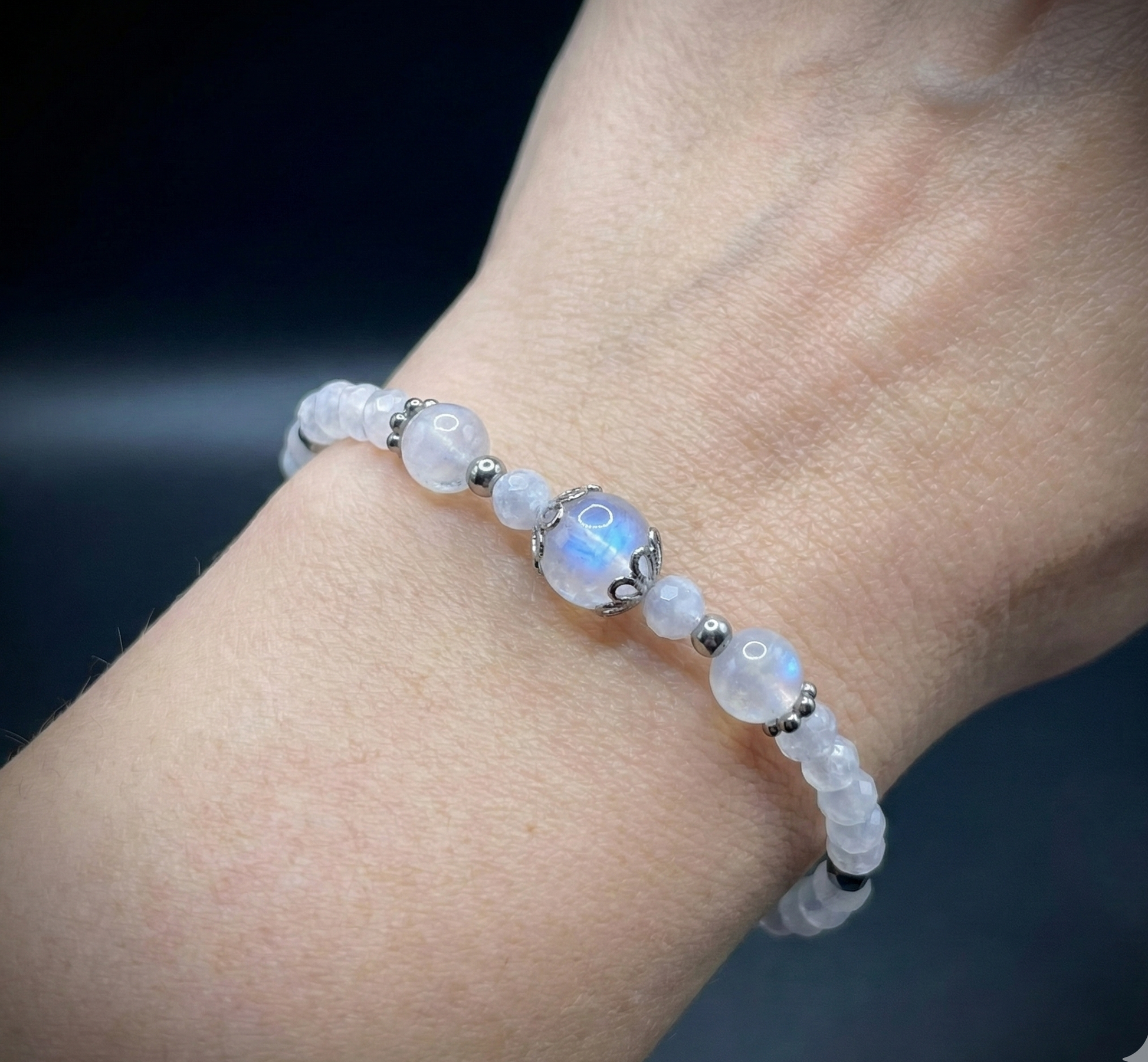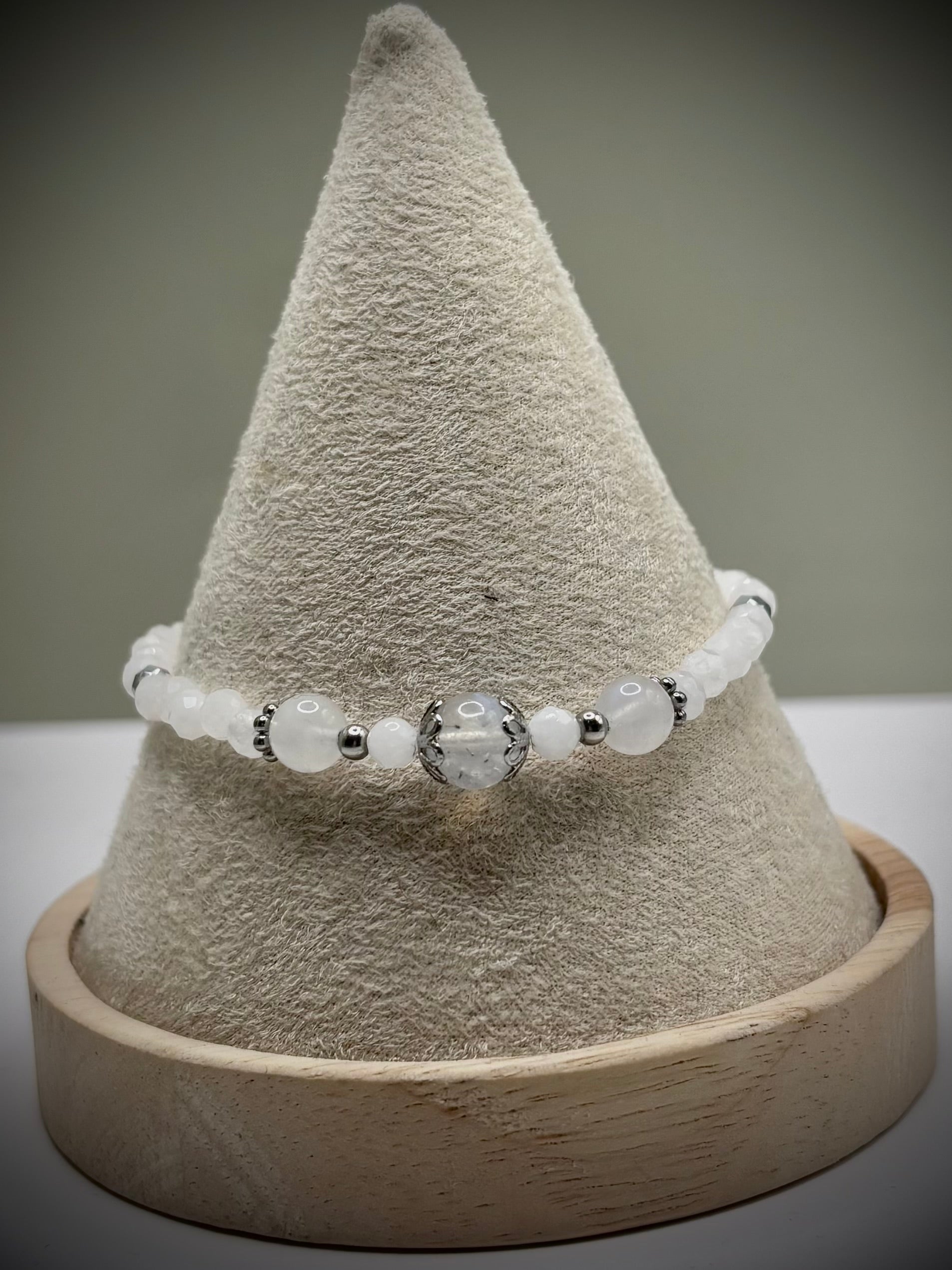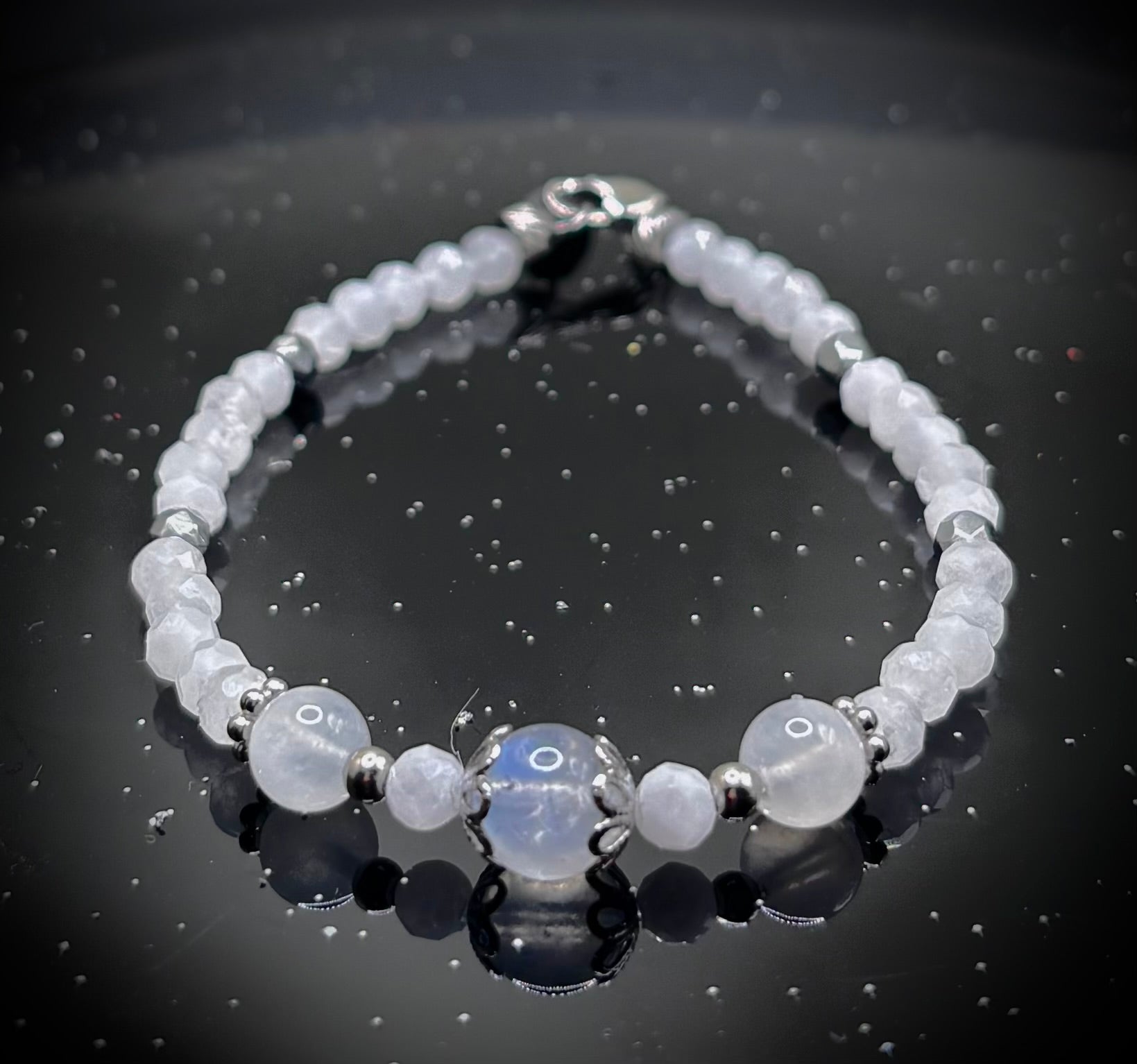 HOA Лунен камък: Небесен Ореол - дамска гривна с фасетиран Лунен камък