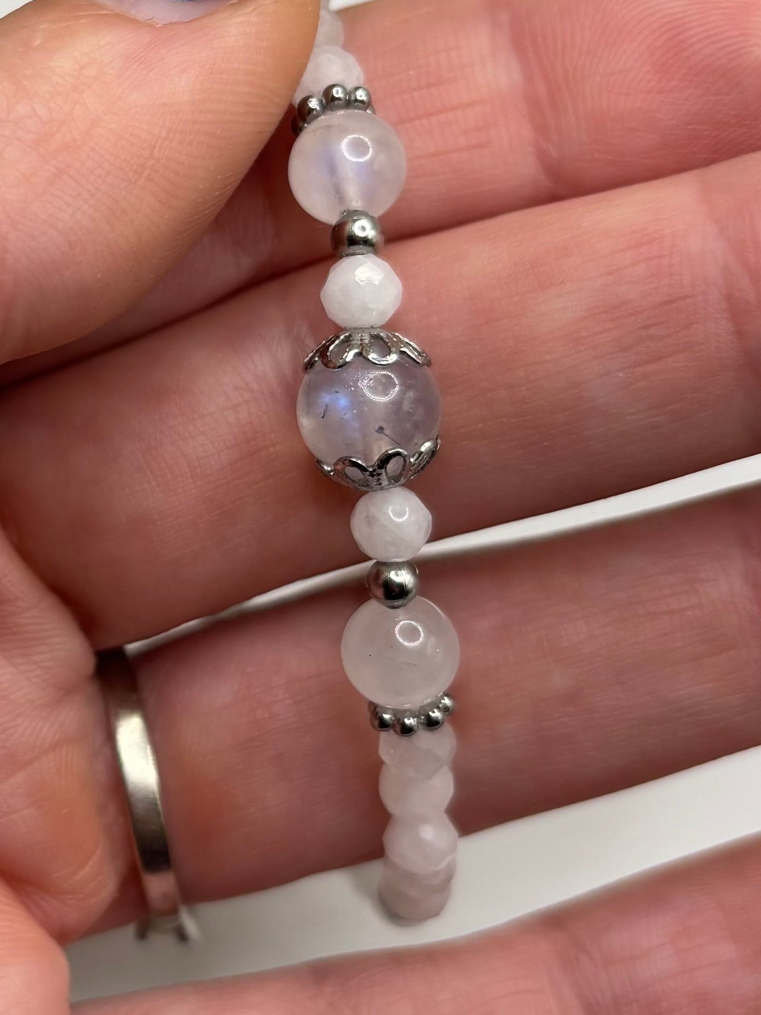 Камъни: 100% естествен фасетиран Лунен камък, class AAA, с характерна адуларесценция.