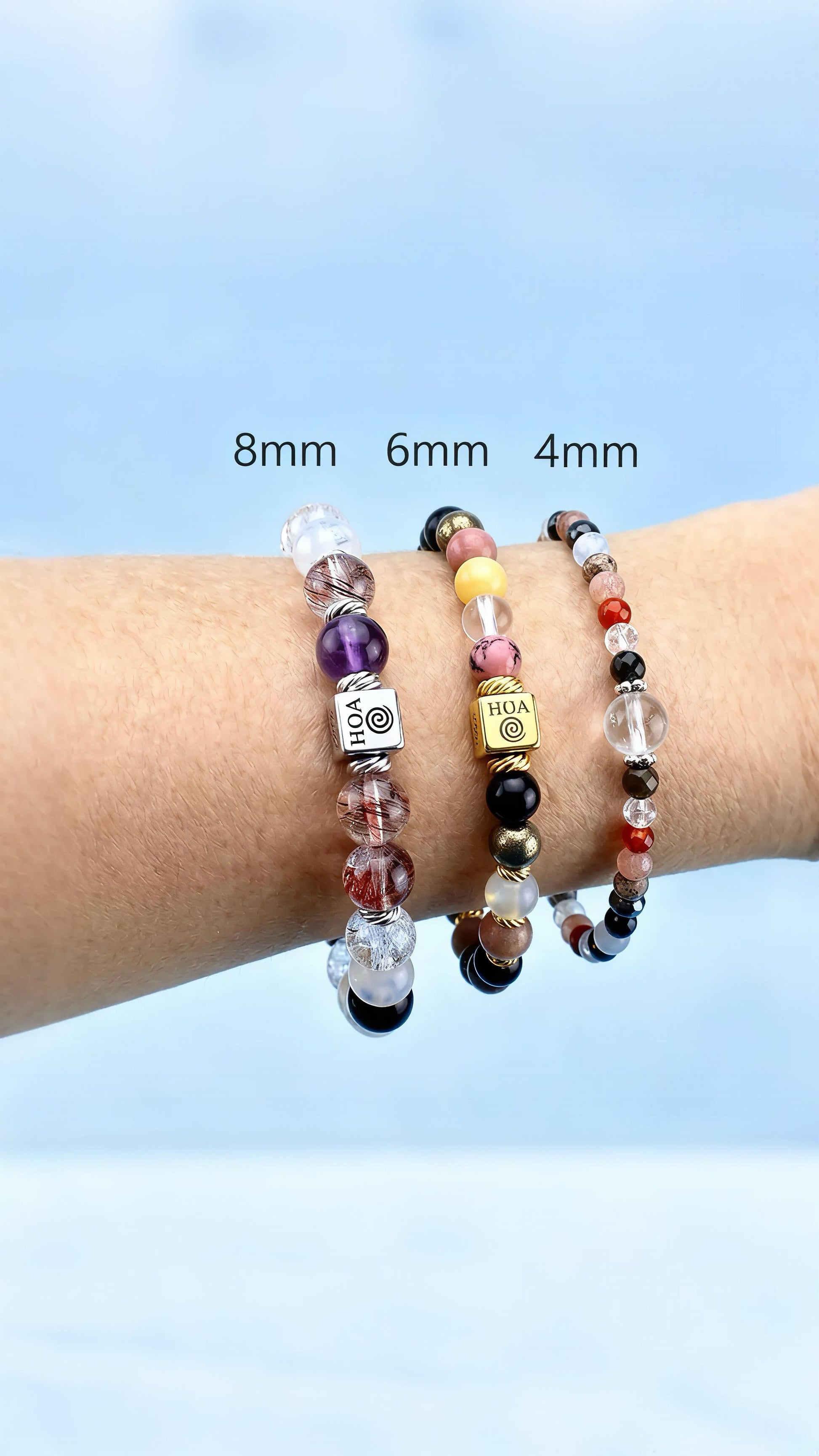 За да прилегне гривната точно както трябва, измерете китката си плътно, но комфортно — точно до костта, без да добавяте излишна дължина. Така получаваме най-точната основа за изработка.