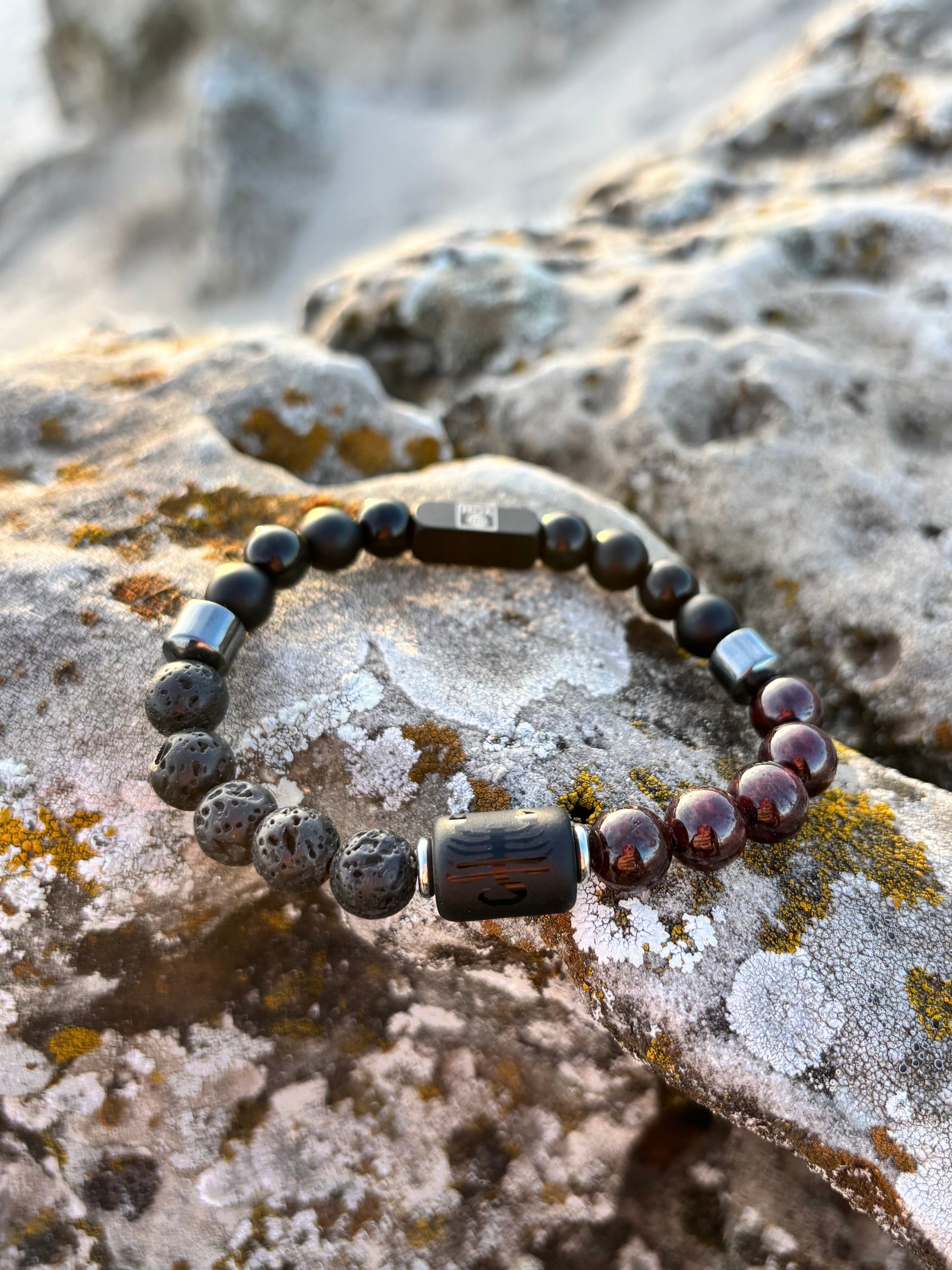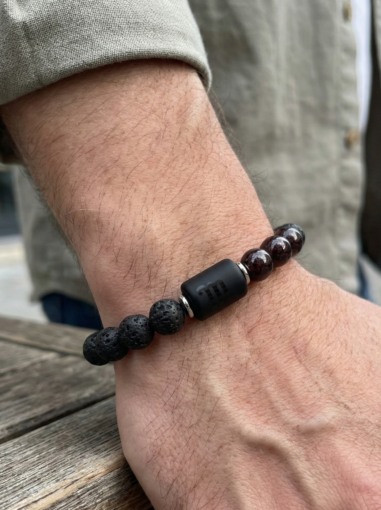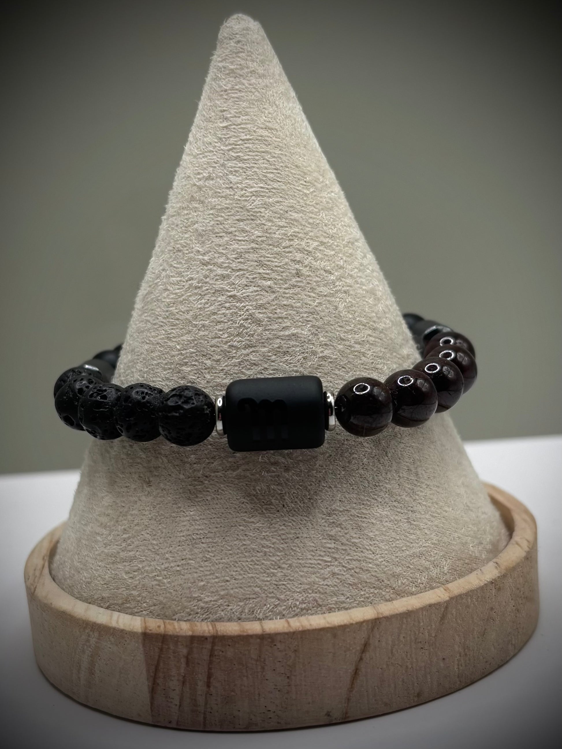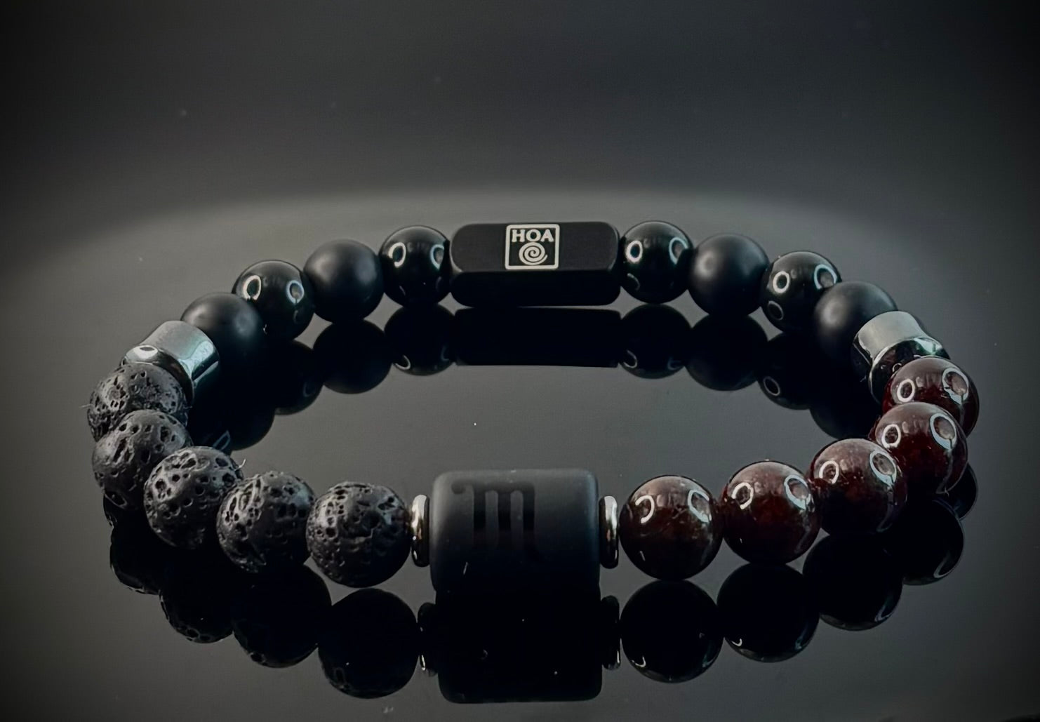 “Scorpio Veil” е мъжка гривна за зодия Скорпион, създадена за мъже с дълбока енергия, силна воля и контрол над собствените импулси.